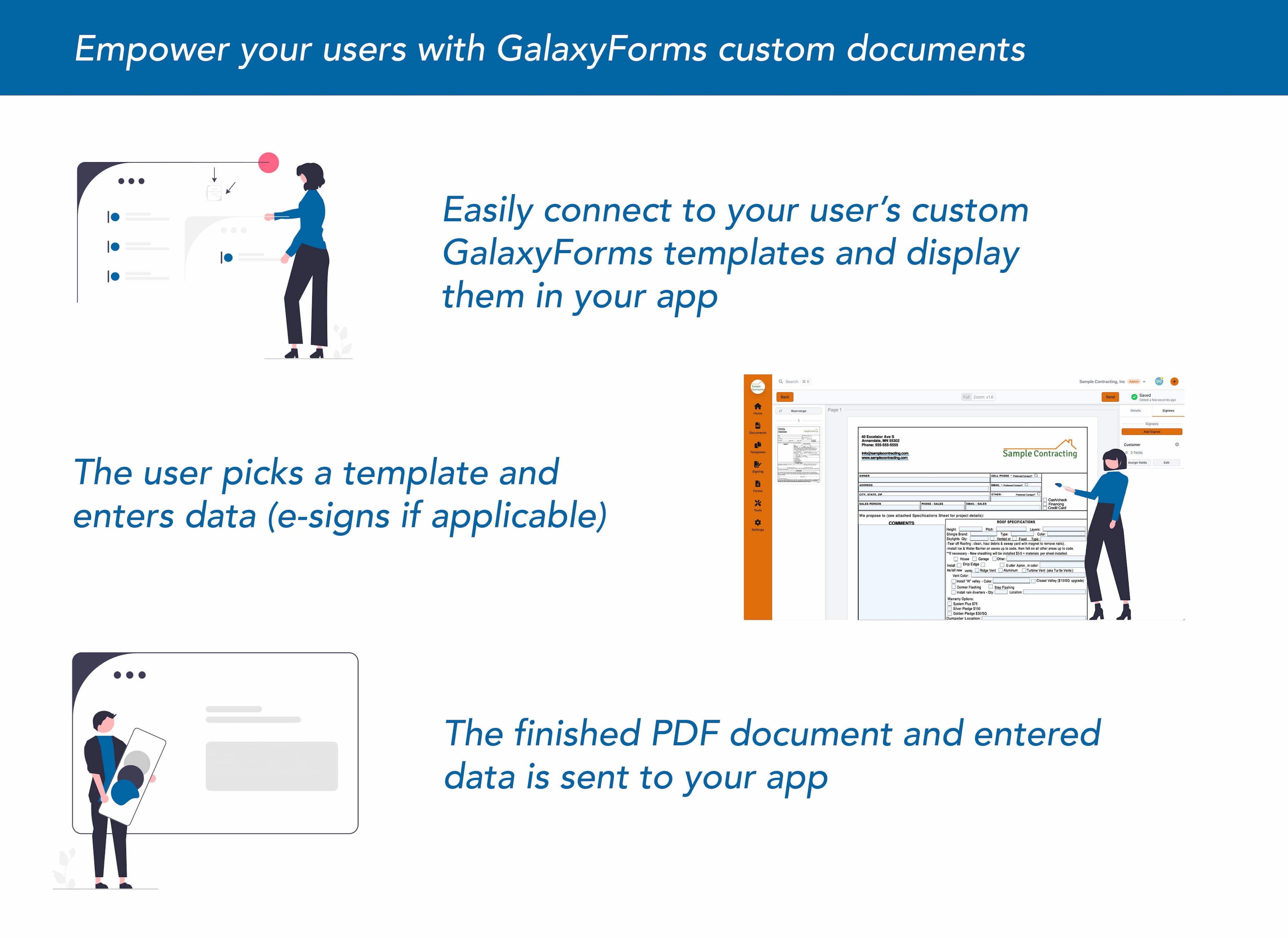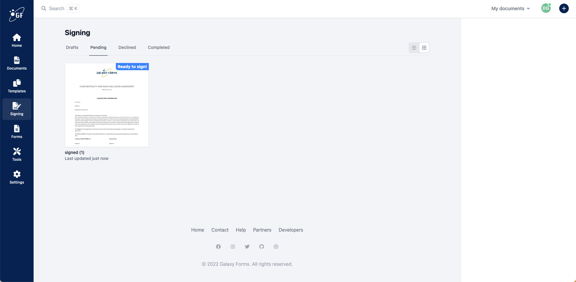 Galaxy Forms is a simple and powerful PDF document editor, e-signature platform, and form builder powered by an amazing API.
